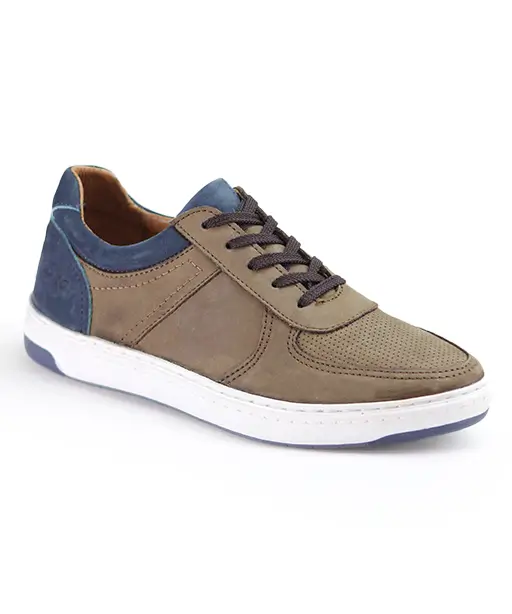 Material: NubockGrasso Olivo con el cuello, talón y palomíaen NubockAzul Jeans, una combinación que gusta.