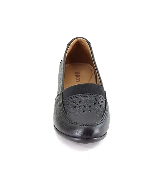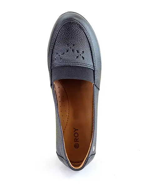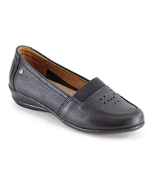 Mocasín para dama con elástico en el empeine para mejor ajuste. Lleva un adorno troquelado