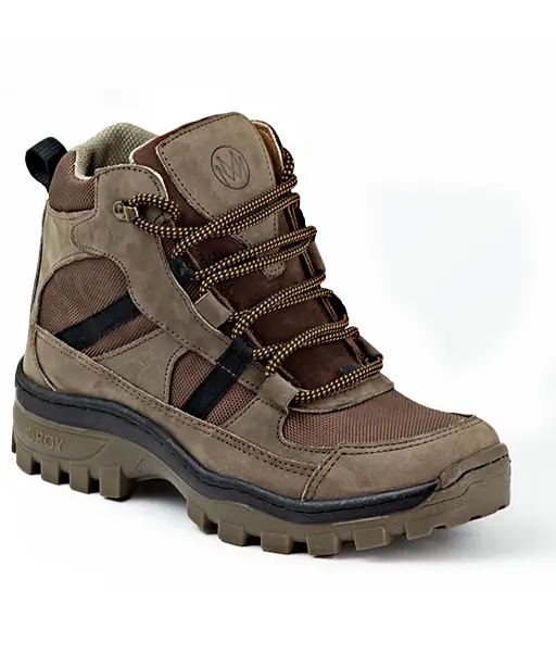 Disponible en color café óleo, presenta un diseño robusto con cordones