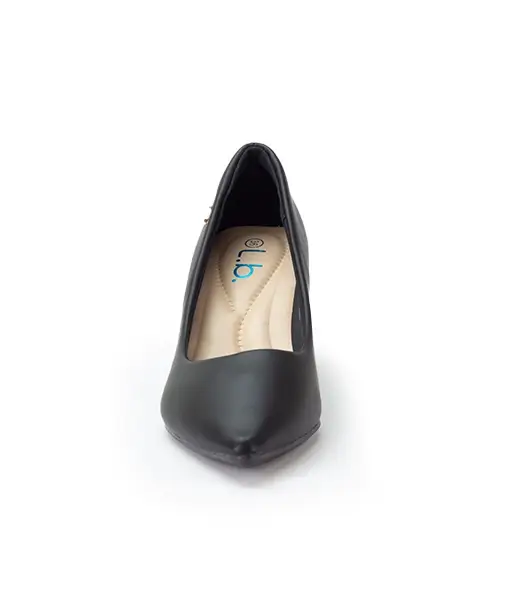 Este zapato de tacón pequeño color Negro es el básico perfecto que combina con cualquier atuendo, ideal para la oficina, graduaciones, convivios o eventos especiales. Su diseño de punta fina y tacón ancho aporta un toque sofisticado mientras brinda la comodidad necesaria para usarlo durante todo el día.