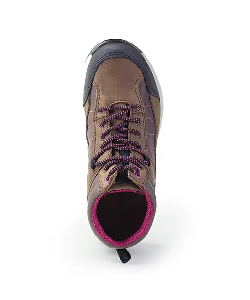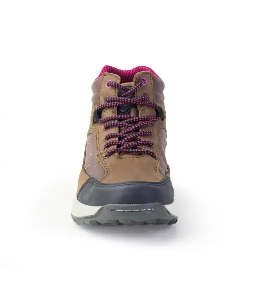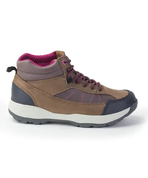 Material: Cuero de alta calidad, piel Crazy color café, con toques fucsias.