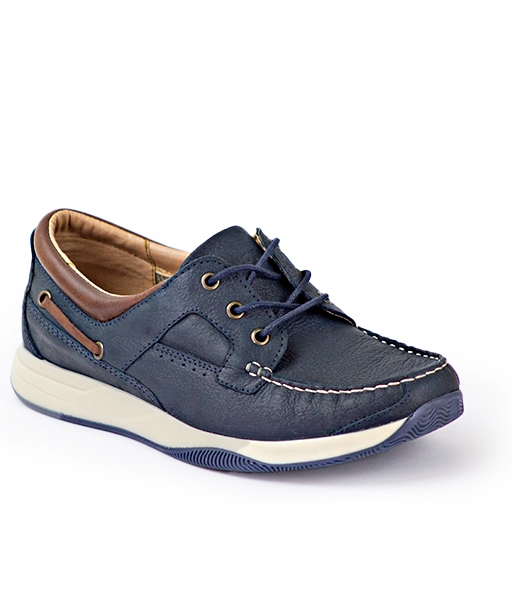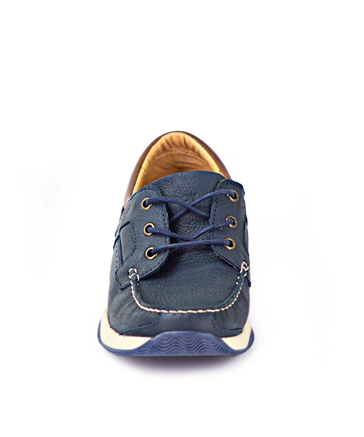 Zapato casual tipo náutico de caballero. Construcción tipo guante con costura al frente.